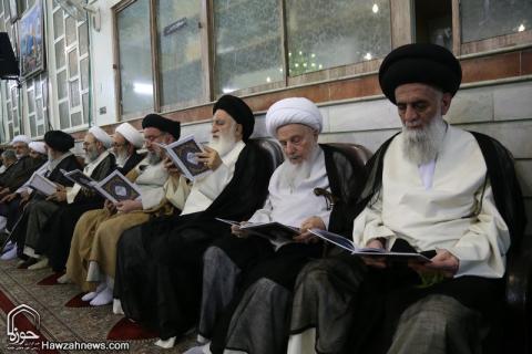 به گزارش خبرنگار پایگاه اطلاع رسانی نشست دوره ای اساتید، مراسم ختم عالم ربانی حضرت آیت الله عراقچی ساعاتی پیش در حسینیه شهدای قم، با حضور علما، مسئولین و مردم متدین برگزار شد.