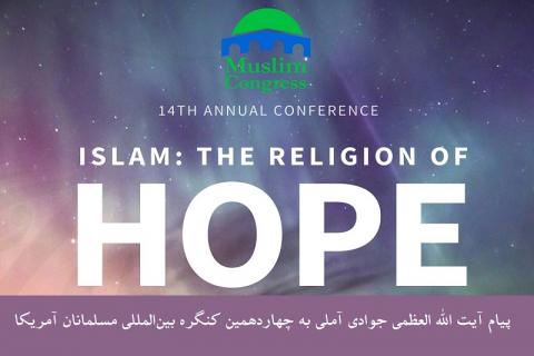 به گزارش پایگاه اطلاع رسانی نشست دوره ای اساتید به نقل از پایگاه اطلاع رسانی اسراء، چهاردهمین کنگره بینالمللی مسلمانان آمریکا با هدف هویت بخشی به جامعه شیعی و مسلمان آمریکا با موضوع "اسلام دین امید" با پیام ویدیویی حضرت آیت الله العظمی جوادی آملی در ایالت "ارلاندو" آمریکا در تاریخ ۱۵ الی ۱۷ تیر ماه برگزار شد.