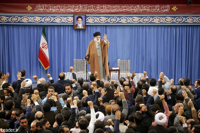 در این مراسم، رهبر انقلاب اسلامی در سخنانی ضمن تبریک سالروز میلاد حضرت فاطمه زهرا سلاماللهعلیها، ذاکران و مدیحه سرایان حسینی را سرمایه و ذخیرهای برای پیشبرد اهداف اسلام و انقلاب خواندند و با تأکید بر اینکه از این سرمایه باید در جهت اهداف حسینی و فاطمی و تبیین معارف انقلاب استفاده شود، گفتند: امروز صفبندی جبهه حق و باطل همان صفبندیهای دوران پیامبران بزرگ الهی و دوران ائمه اطهار علیهمالسلام است و همانگونه که در آن زمان جبهه باطل به رغم کثرت نفرات و تجهیزات و تبلیغات نابود شد، امروز هم همان سرنوشت در انتظار جبهه مقابلِ انقلاب اسلامی است و نباید از دشمن ترسید و دچار اشتباه محاسبه شد.