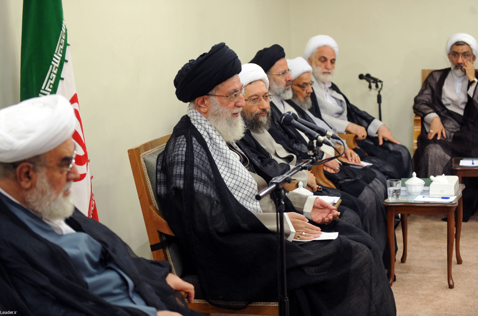 به گزارش پایگاه اطلاع رسانی نشست دوره ای اساتید به نقل از پایگاه اطلاع رسانی دفتر مقام معظم رهبری، حضرت آیت الله خامنهای رهبر معظم انقلاب اسلامی صبح امروز (یکشنبه) در دیدار با رئیس و مسئولان عالی دستگاه قضائی و همچنین رؤسای کل دادگستریها و دادستانهای مراکز استانها، ضمن بیان شش اولویت اصلی برای دوره جدید 5 ساله ریاست آیت الله آملی لاریجانی در قوه قضائیه، همکاری و همدلی و یکصدائی رؤسای سه قوه در مسائل کلان و مصالح عمومی کشور را بسیار ضروری و مهم برشمردند و با اشاره به تحولات اخیر عراق تأکید کردند پشت پرده فتنهانگیزی و آتشافروزی در عراق، قدرتهای غربی سلطهگر و در رأس آنها رژیم آمریکا قرار دارند و جمهوری اسلامی ایران ضمن مخالفت شدید با هر گونه دخالت آمریکا در مسائل داخلی عراق، معتقد است مردم و دولت و مرجعیت دینی این کشور توانائی پایاندادن به این آتشافروزی را دارند.