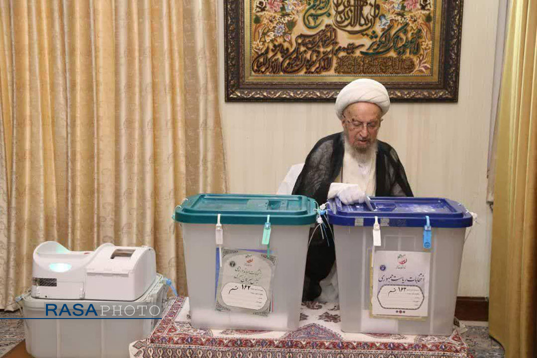 به گزارش پایگاه اطلاع رسانی نشست دوره ای اساتید، حضرت آیت الله مکارم شیرازی رأی خود را به صندوق سیار انداخت و با اشاره به اهمیت انتخابات، بر لزوم حضور حداکثری مردم پای صندوق های رأی تأکید کرد.