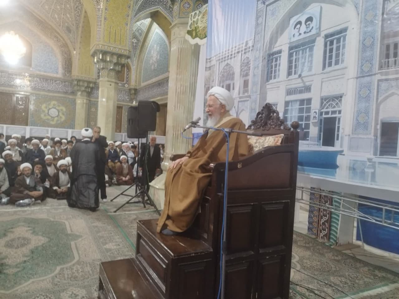 حضرت استاد در ابتدا خاطرنشان کردند: عید پربرکت میلاد عقیله عرب و عجم، عقیله بنی هاشم، زینب کبری سلام الله علیها را به پیشگاه حضرت ختمی امامت و دودمان وحی و نبوت و شما وارثان قرآن و عترت و حافظان قرآن و عترت و معلمان قرآن و عترت و مبلغان قرآن و عترت، تهنیت عرض می کنیم و از ذات اقدس اله، مغفرت بنیانگذار و بنیانگذاران حوزه های علمیه، عموما، حوزه علمیه پربرکت نجف و قم، خصوصا، آیت الله حائری، امام راحل، محقق داماد، آقای اراکی و آیت الله العظمی گلپایگانی و آیت الله العظمی صافی گلپایگانی سلام الله علیهما و علیهم اجمعین را خواستاریم؛ بزرگوارانی که به برکت قرآن و عترت توانستند این میراث را حفظ کنند.