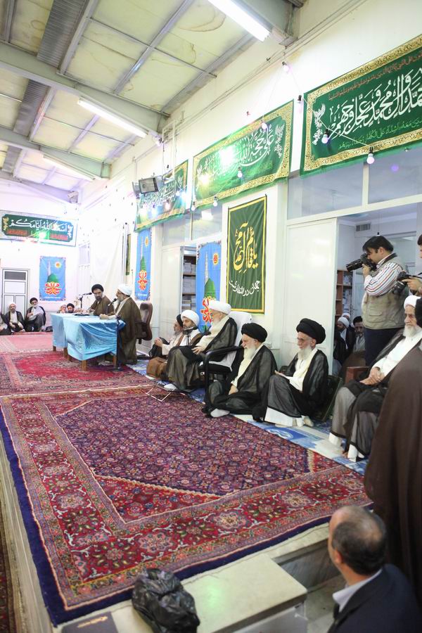 جلسه عمومی نشست دوره ای اساتید پنجم خرداد 1393 در شب مبعث رسول گرامی اسلام صلی الله علیه و آله و سلم با حضور حدود 900 نفر از اساتید سطوح عالی و خارج حوزه علمیه قم در دفتر حضرت آیت الله صافی گلپایگانی برگزار شد.