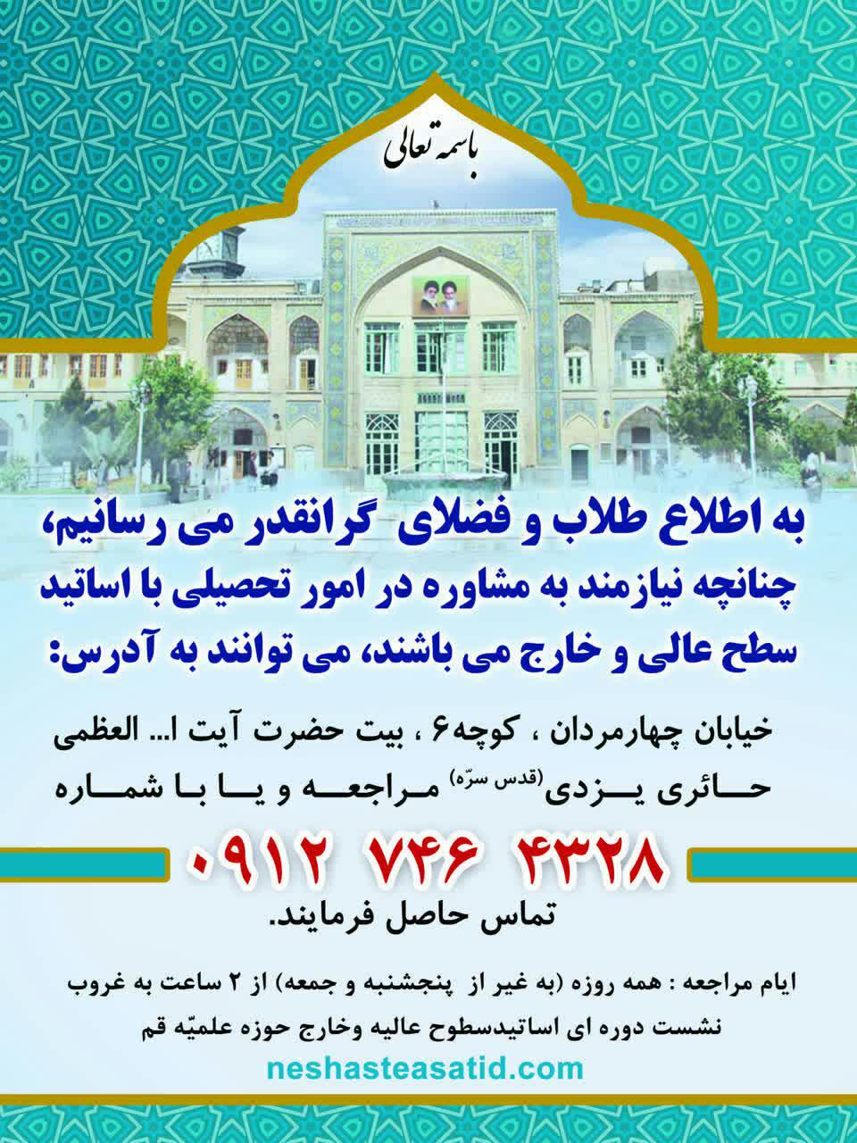 مشاوره تحصیلی با استفاده از اساتید مجرب و با سابقه سطح عالی و خارج حوزه علمیه قم